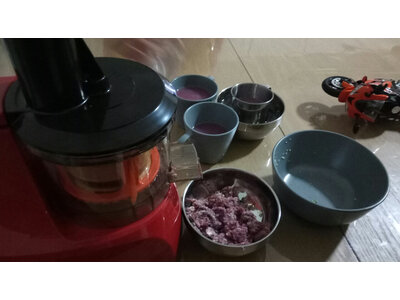5、惠人H300原汁机百年品牌就是值得信赖,马达哄哄的,还没有噪音,榨出的果汁很好喝像外面店里卖的,个人觉得只要是榨汁肯定有渣子,除非你吃整个水果,出汁率还挺高的,刚到货就给儿子榨了个番茄樱桃汁,很好喝,很满意的一次购物!